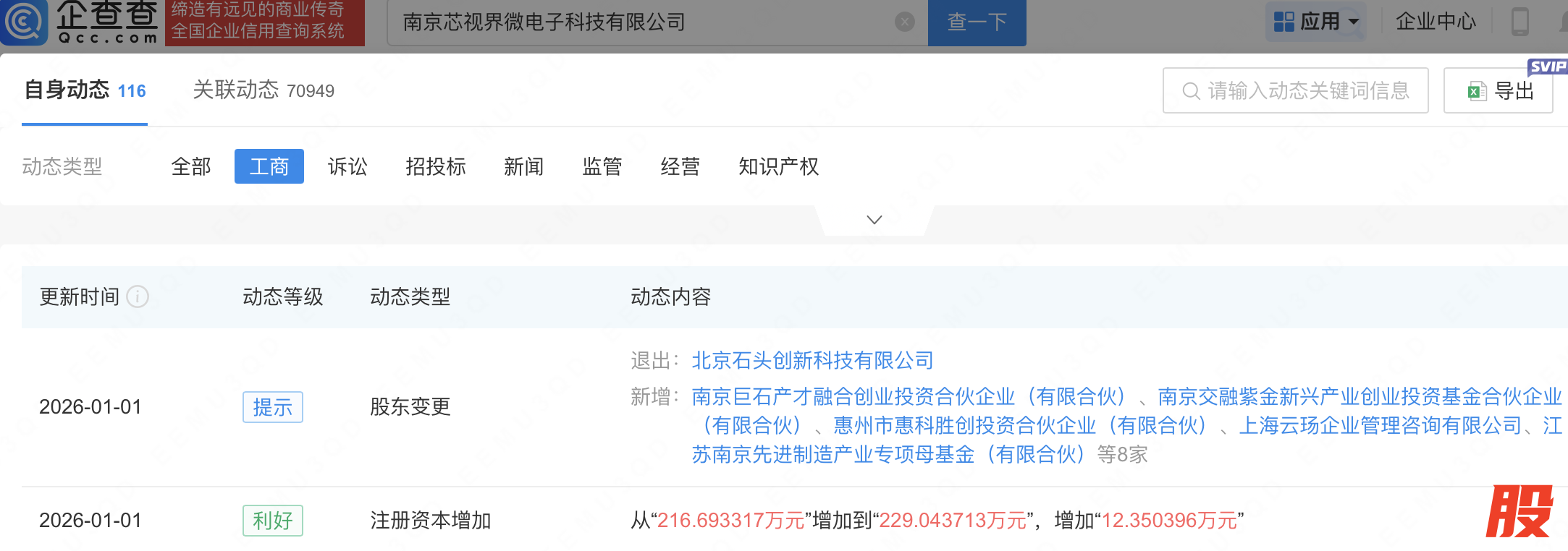 近日,南京芯视界微电子科技有限公司发生工商变更,新增蚂蚁科技集团股份有限公司全资子公司上海云玚企业管理咨询有限公司等为股东,同时注册资本增至229.04万元。企查查信息显示,该公司成立于2018年,经营范围包含:从事半导体科技电子产品领域内的技术开发、技术转让、技术咨询和技术服务等。公开信息显示,该公司拥有芯片级的光电转换器件设计和单光子检测成像技术,主营基于单光子探测的一维和三维ToF传感芯片。